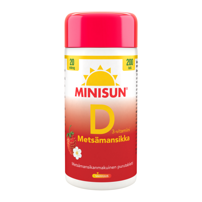 Minisun D-vitamiini Metsämansikka 20 mikrog 200 TABL