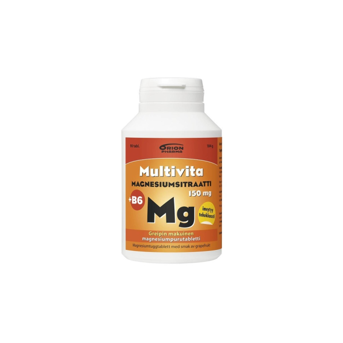 Urheilijoiden ja kuntoilijoiden luottotuote! Luonnollista greippiaromia sisältävä hedelmäinen ja raikkaanmakuinen purutabletti sisältää 150 mg magnesiumia hyvin imeytyvässä sitraattimuodossa sekä 2 mg magnesiumin imeytymistä tehostavaa B6-vitamiinia. Sitraattimuodossa oleva magnesium imeytyy tehokkaasti myös vähähappoisessa tai hapottomassa vatsassa. Rakenteeltaan miellyttävä tabletti ei jätä jauhoista suutuntumaa. Purutabletti on kätevä nauttia ilman nestettäkin, siksi se on erinomainen esimerkiksi urheilevien ravitsemuksen tueksi. Laktoositon, gluteeniton, hiivaton ja sokeriton. Sopii myös vegaaneille. Ravintolisä.